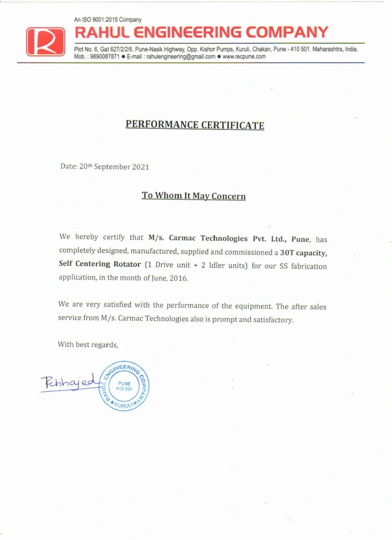 We would like to introduce our company “CARMAC TECHNOLOGIES PVT. LTD” as one of the leading companies involved in the Design, Manufacture, Supply, Erection & Commissioning of the complete range of Welding Manipulators and Material Handling Systems in India.